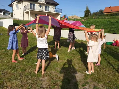 - Różnorodne zabawy ruchowe, muzyka i bańki